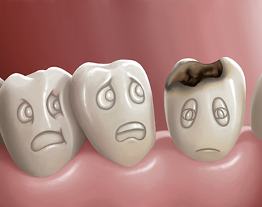 Cavities, or tooth decay, are the destruction of your tooth enamel, the hard, outer layer of your teeth. It can be a problem for children, teens, and adults. Plaque, a sticky film of bacteria, constantly forms on your teeth. When you eat or drink foods containing sugars, the bacteria in plaque produce acids that attack tooth enamel. The stickiness of the plaque keeps these acids in contact with your teeth and over time the enamel can break down. This is when cavities can form. A cavity is a little hole in your tooth.